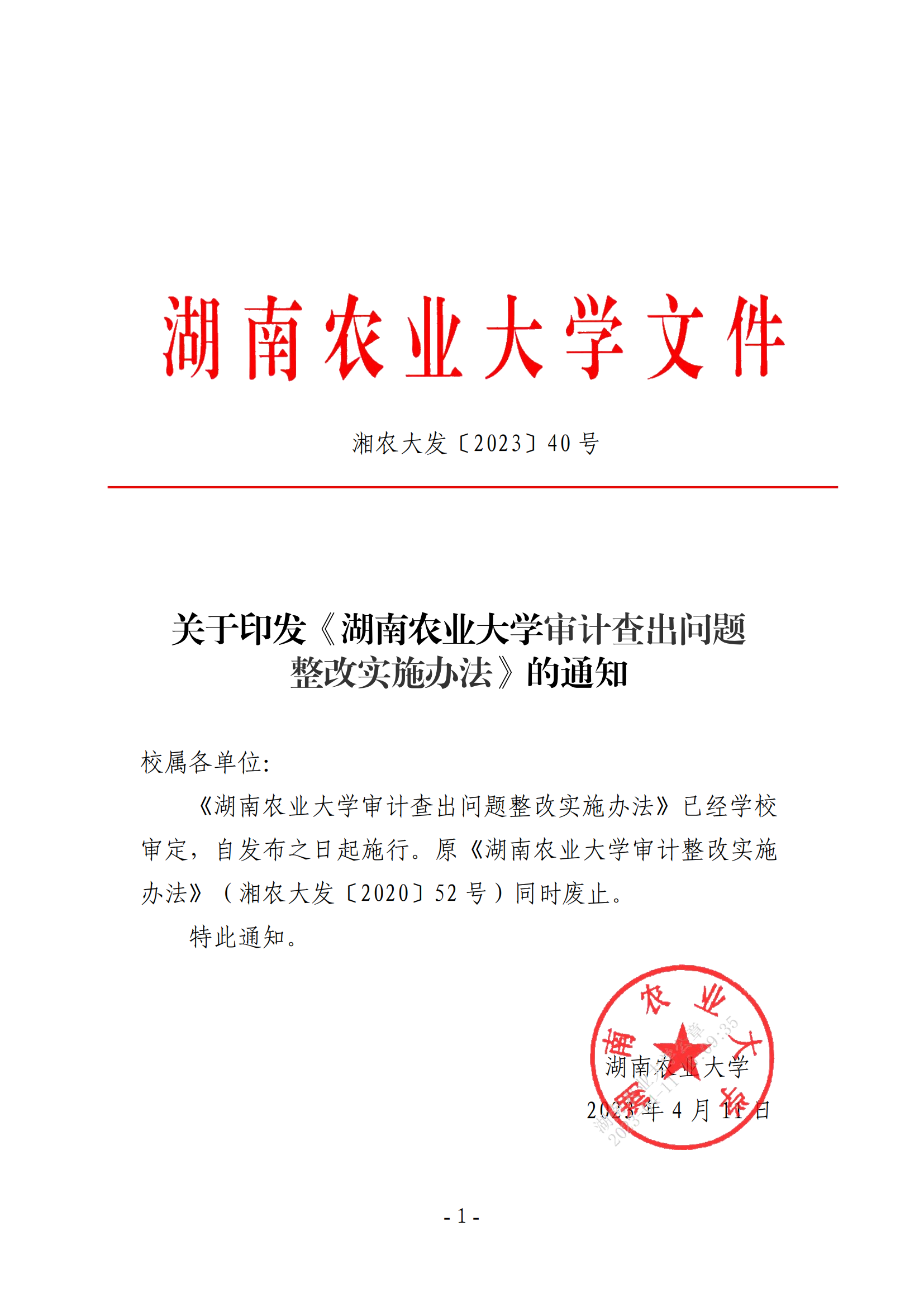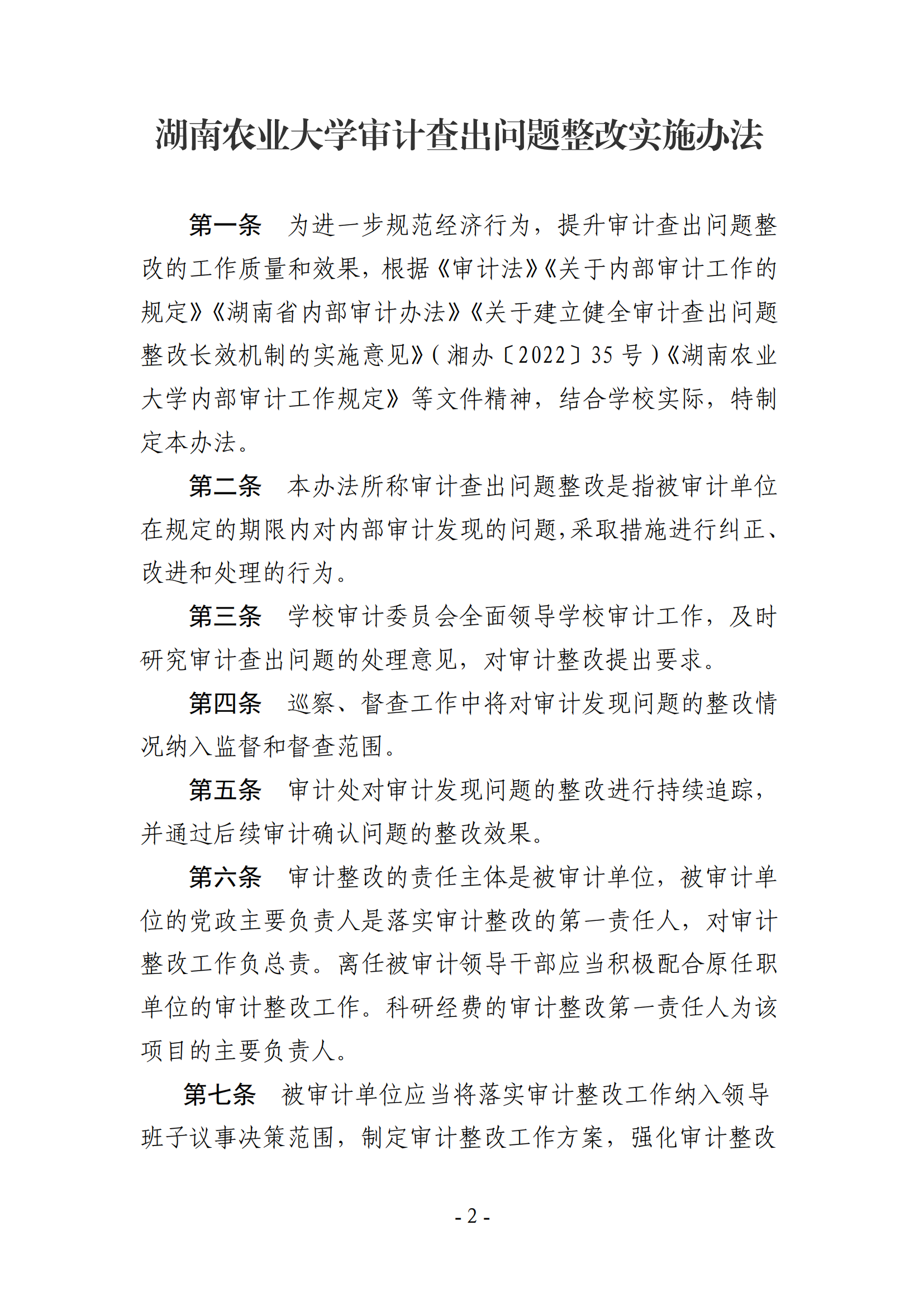 关于印发《湖南农业大学审计查出问题 整改实施办法》的通知
